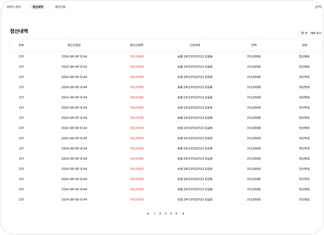 정산 신청부터 지급까지의 모든 과정을 명확하게 확인할 수 있습니다.